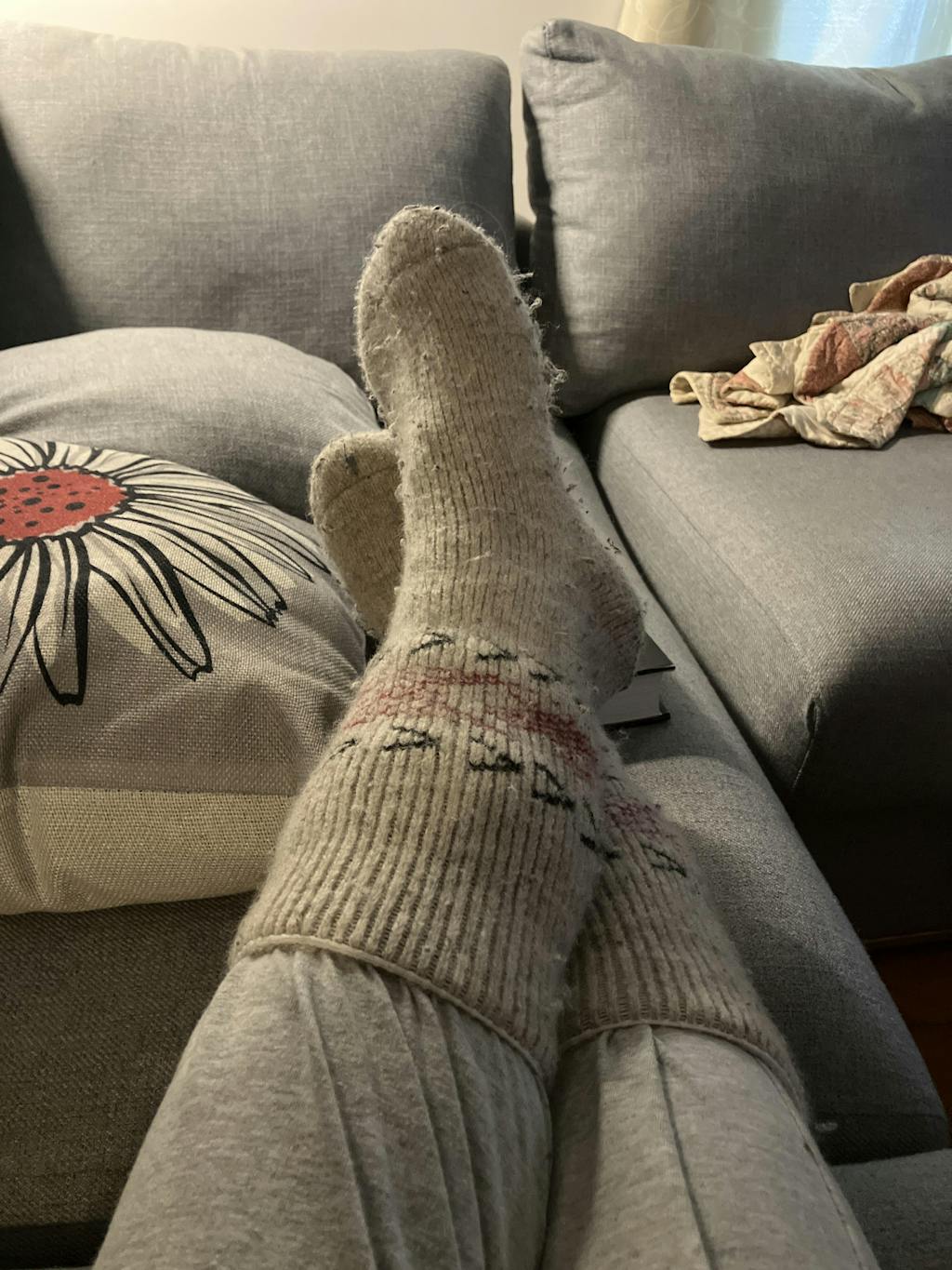 These are great, very warm and thick, I put them on to lounge on the couch in!