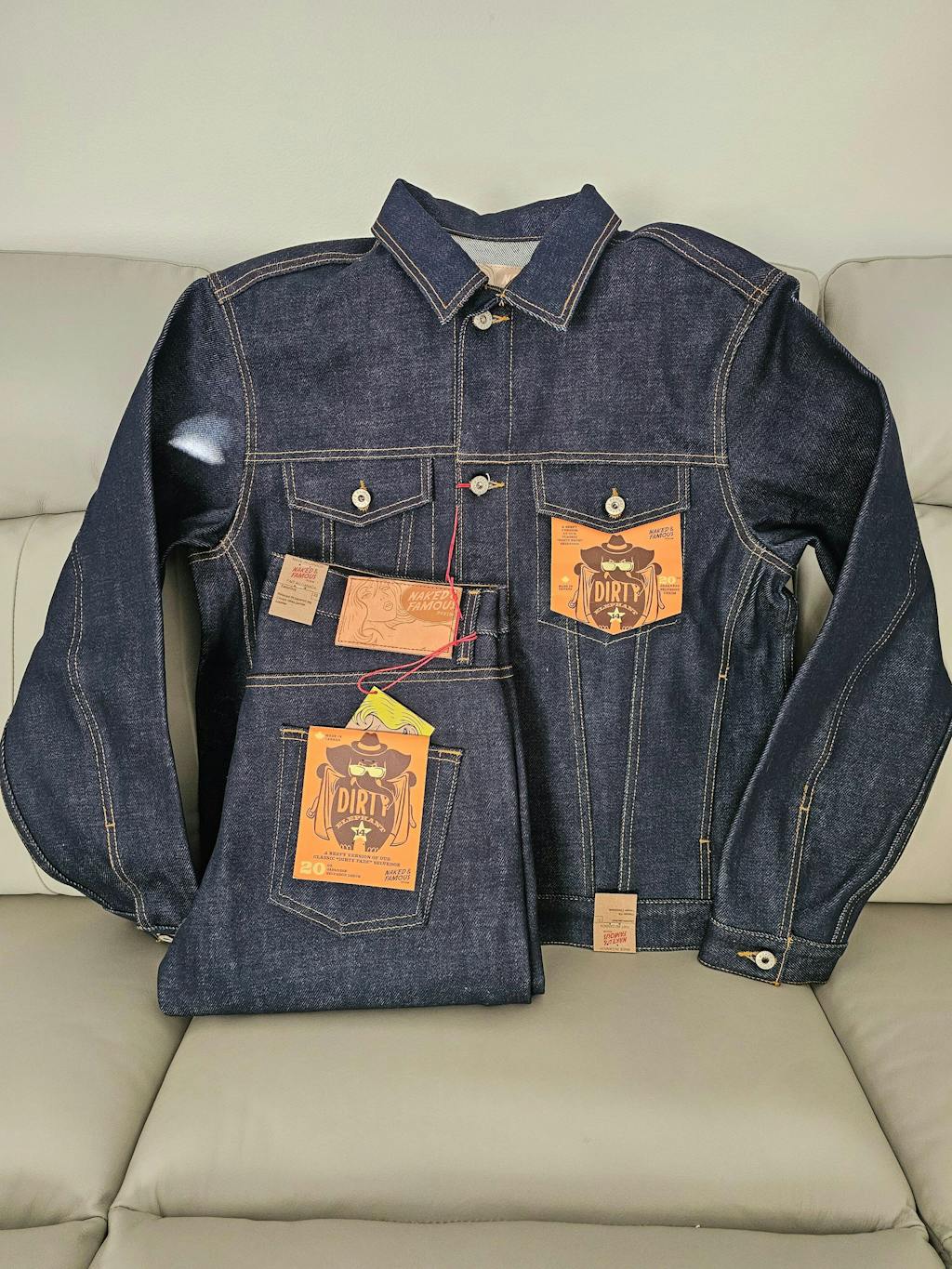 The Elephant 14 ...aka Dirty Elephant is a 20oz super heavyweight Japanese selvedge denim that combines the bold, rugged weight of our iconic Elephant series with the distinct character of one of our most beloved core fabrics - Dirty Fade Selvedge. The warp yarns are rope-dyed in indigo, but start as naturally dusty brown cotton. As the denim fades with wear, layers of indigo chip away to reveal the earthy brown undertone beneath, giving this fabric its signature “dirty” fade. Finishing details include contrast stitching, a 5oz vegetable-tanned leather patch, a custom red/white/red selvedge ID, and silver metallic buttons and rivets.